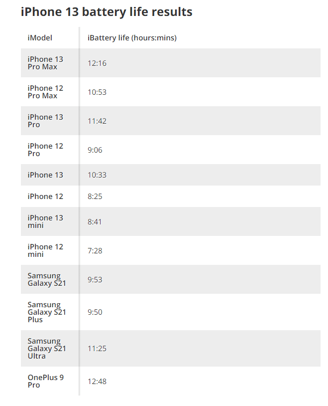 На презентації Apple стверджувала, що iPhone 13 mini і iPhone 13 Pro працюють на 1,5 години довше попередників, а iPhone 13 і iPhone 13 Pro Max - на 2,5 години довше. І, схоже, вона не обманула.